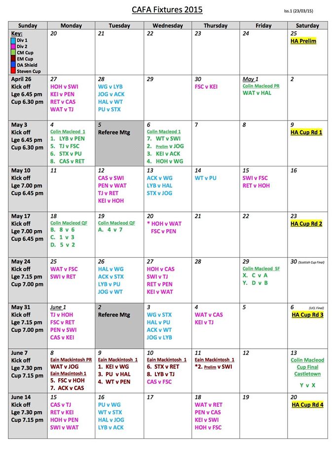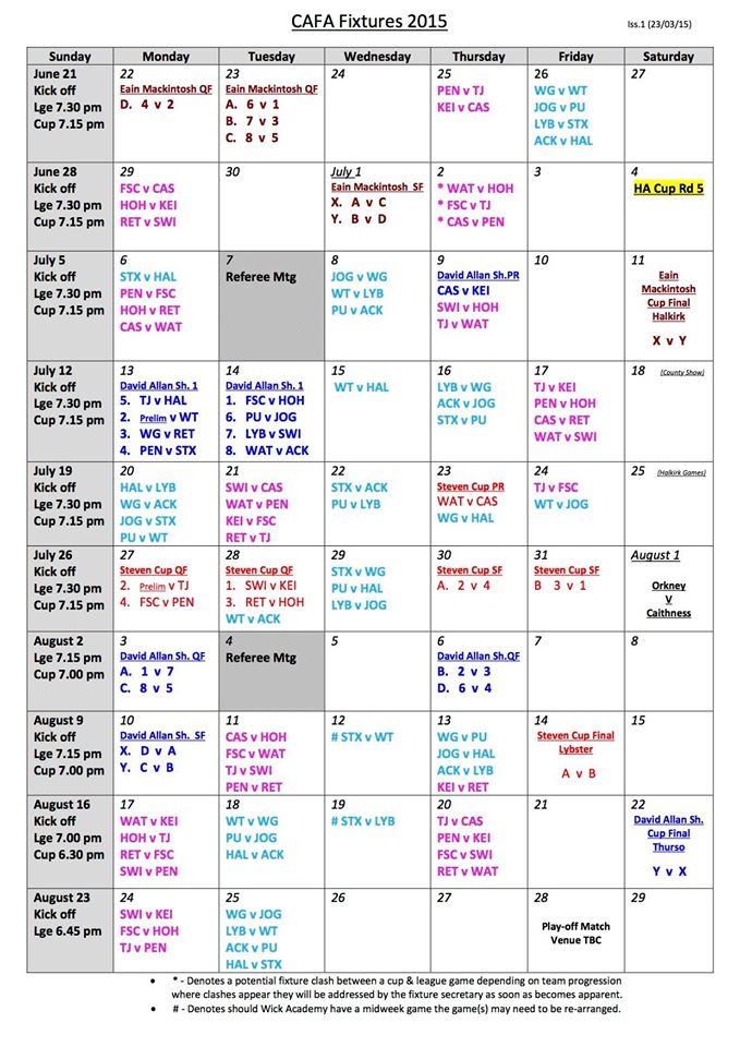 The Caithness AFA Fixtures list for summer season 2015 has been made public tonight (with thanks to the John O’Groats F.C Facebook page for initially posting the sheets)